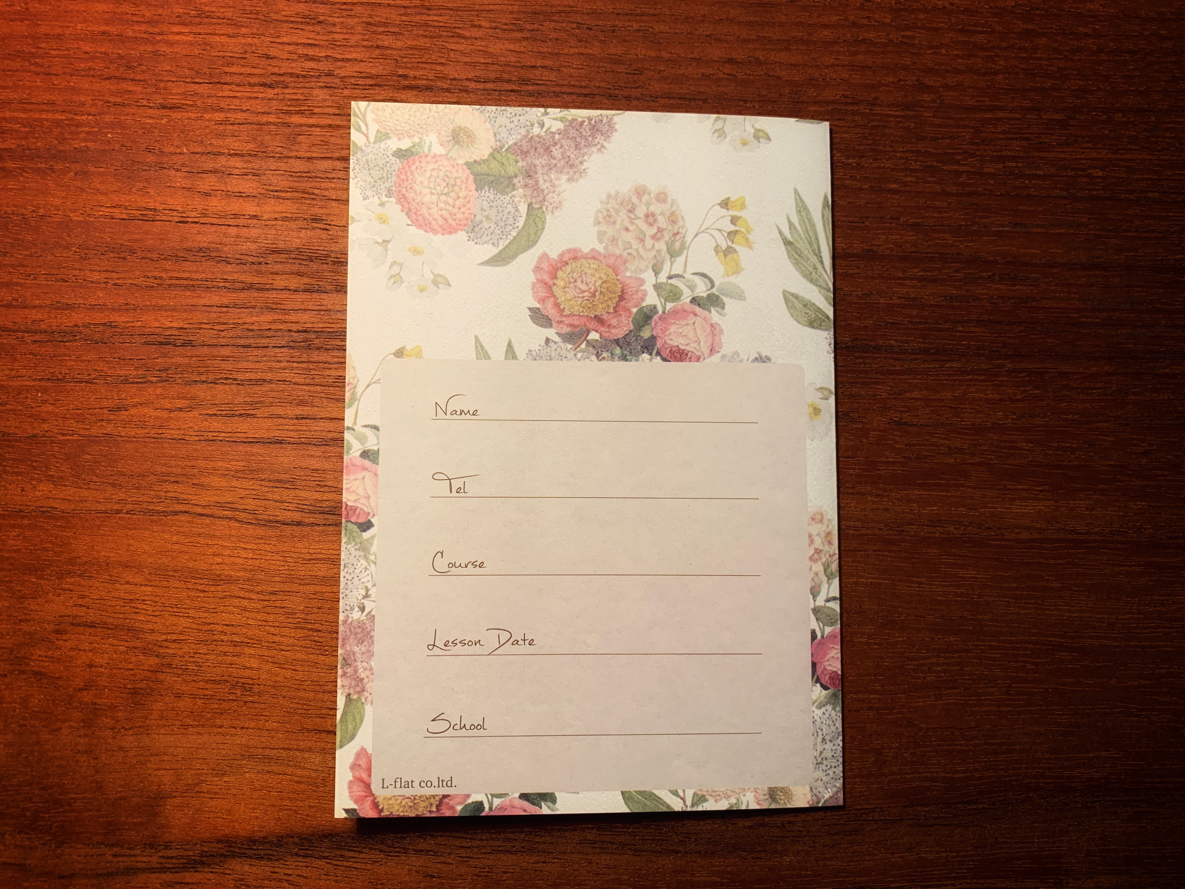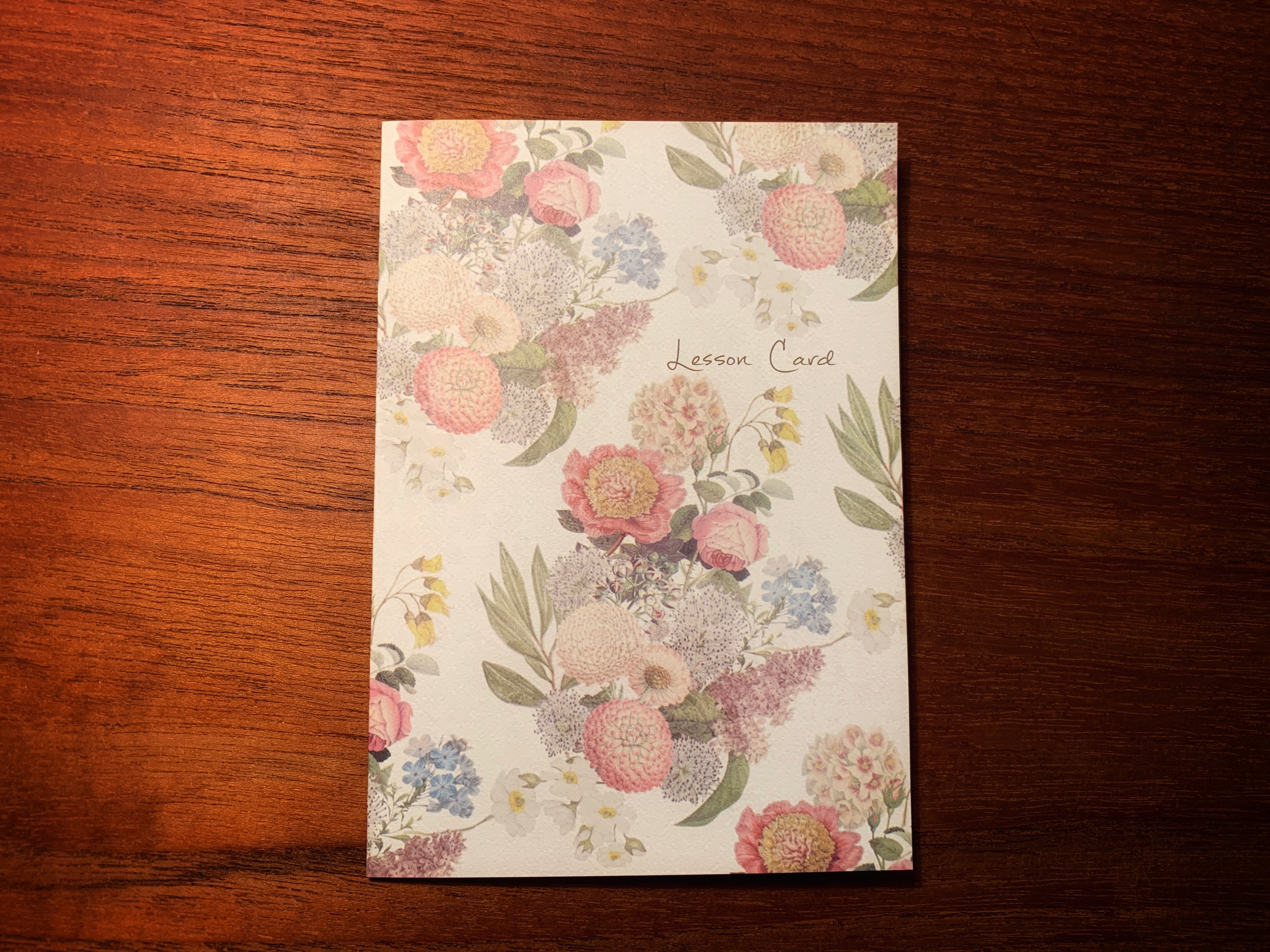 おしゃれな花柄のレッスンカード。ピアノなど楽器のレッスンから、英会話やヨガなどのホームスクールまで幅広くご利用いただけるデザインです。